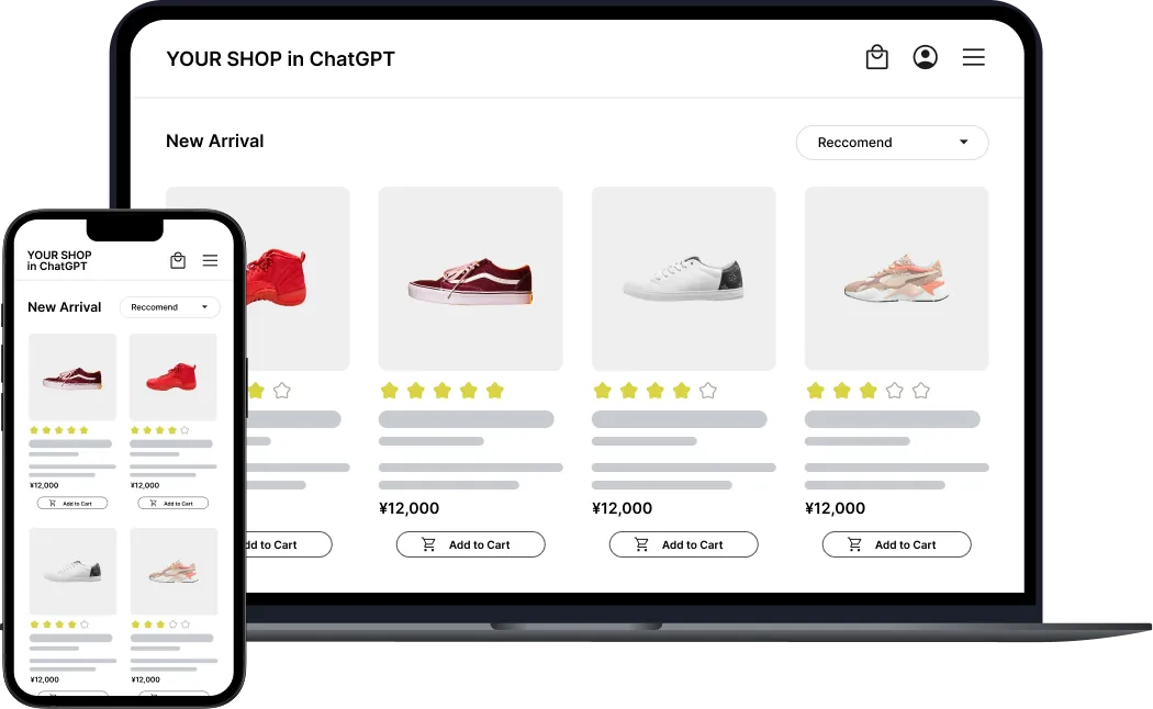 ChatGPTの「Apps in Chat GPT」機能を活用し、あなたのEC サイトをChatGPT 内で直接展開。新しい販売チャネルを開拓し、シームレスな購買体験を提供します。